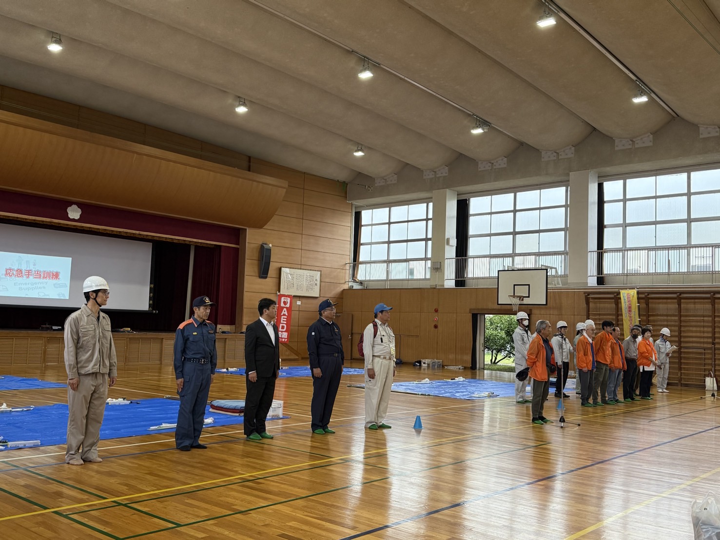 シェークアウト訓練のあとの皆様での防災訓練は、あいにくの天候の為体育館での訓練となりました。