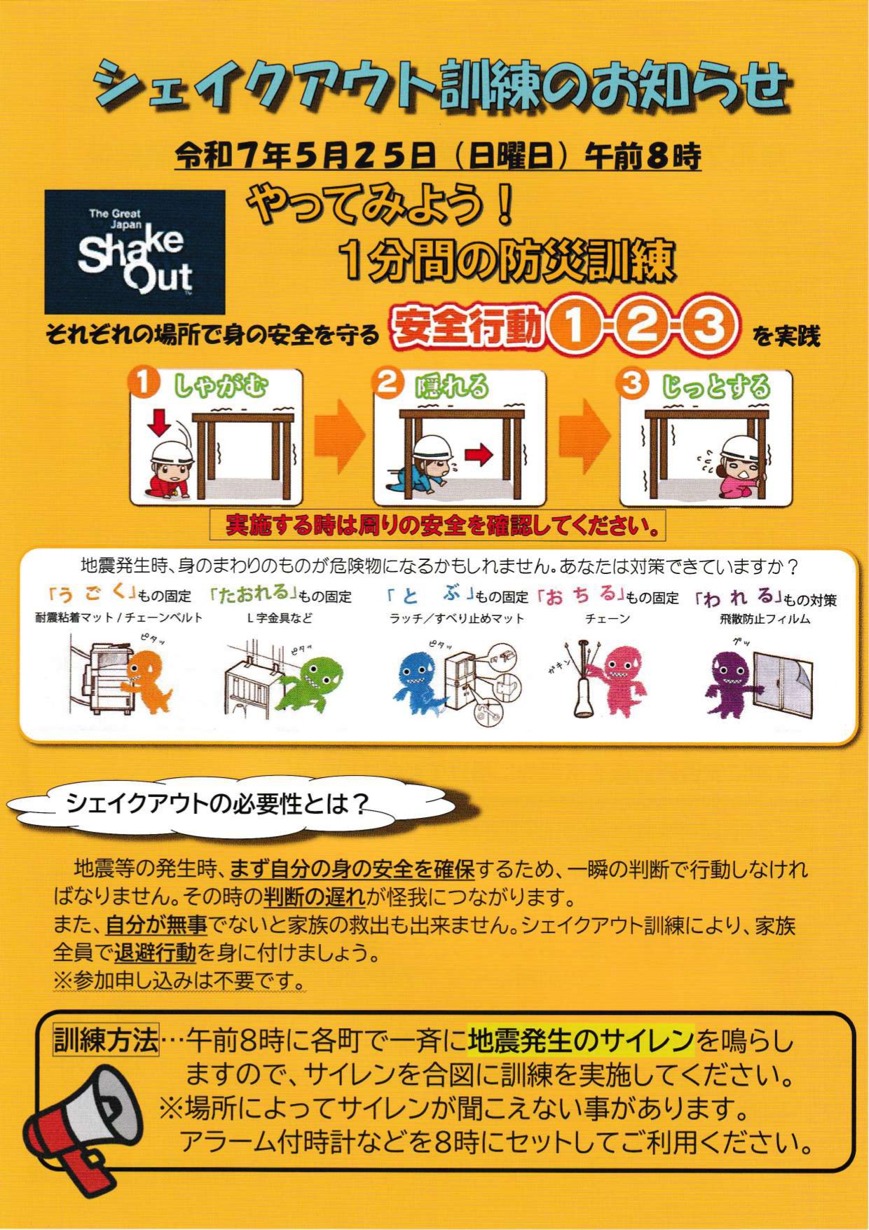 令和7年度 シェイクアウト訓練について